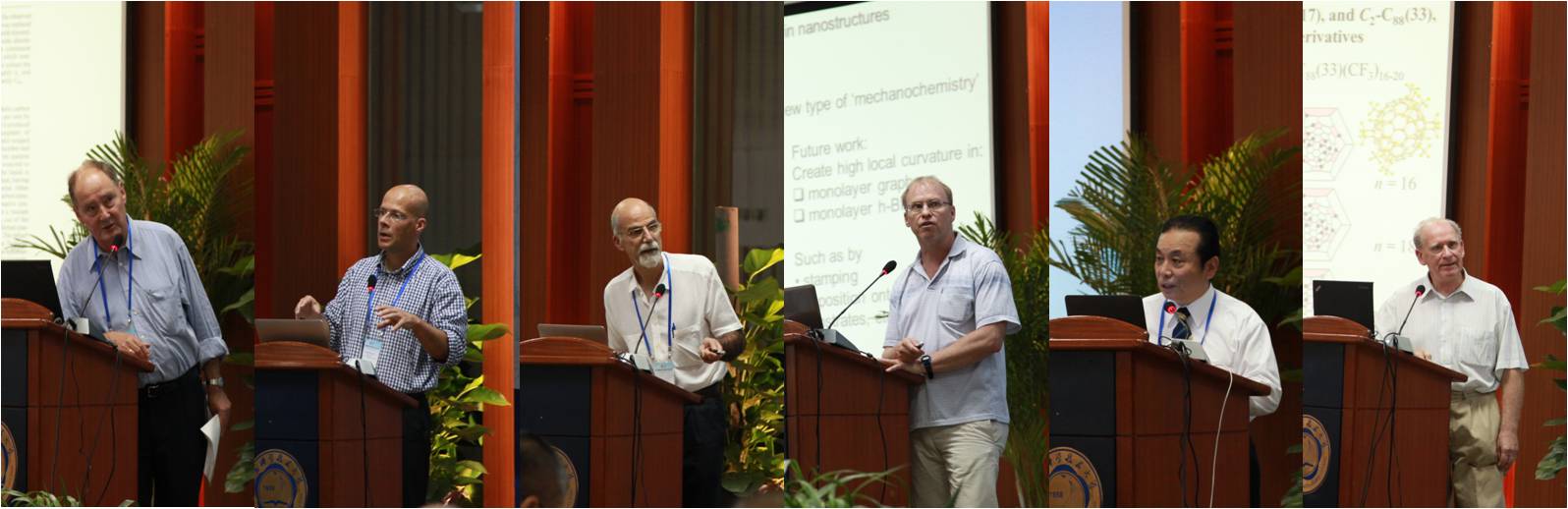 本次会议邀请马克斯-普朗克核物理研究所Wolfgang Kraetschmer教授作了大会报告;德国埃尔兰根-纽伦堡大学Dirk M. Guldi教授、的里雅斯特大学Maurizio Prato教授、德克萨斯大学奥斯汀分校Rodney S. Ruoff教授、日本筑波大学Takeshi Akasaka教授、莫斯科国立大学Sergey I. Troyanov教授、印第安纳-普渡大学Steven Stevenson教授、马里兰大学Yuhuang Wang教授、德国莱布尼茨固体材料研究所Alexey A. Popov研究员、中国科学院化学研究所王春儒教授和刘云圻教授、厦门大学谢素原教授、北京大学甘良兵教授等分别作了精彩的主题报告。中国科大王官武教授、华中科大卢兴教授等分别作了邀请报告。整个研讨会期间,学术报告厅内座无虚席,听众耐心聆听专家学者们的学术报告并踊跃提问,会议气氛十分活跃和融洽。