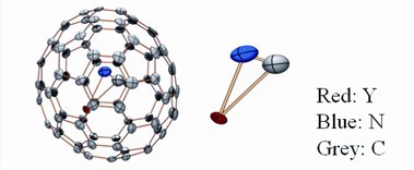 该研究组基于前期在新结构内嵌富勒烯合成和分离方面的系列工作(Angew. Chem. Int. Ed. 2008, 47, 8196-8200;J. Am. Chem. Soc. 2010, 132, 5413-5421;Chem. Commun. 2009, 6391-6393;ACS Nano 2010, 4, 4857-4871;Chem. Eur. J. 2010, 16, 12398-12405;Chem. Eur. J. 2012, 18, 2666-2673;Inorg. Chem. 2012, 51, 3039–3045),以Y2O3与TiO2的混合物作为起始原料通过直流电弧放电法合成内嵌富勒烯,意外地发现了一种基于单金属氰化物原子簇的新型内嵌富勒烯YCN@C82的全新结构,并成功地实现了分离。进一步地,通过与华中科技大学材料科学与工程学院卢兴教授组和日本筑波大学Takeshi Akasaka教授组合作,利用X射线单晶衍射法成功确定出其分子结构为Cs(6)-C82,并证明了其内嵌的物种的确为单金属氰化物原子簇YCN,有意思的是该原子簇的几何构型为三角形,与常规的直线型无机氰化物完全不同。还与美国Univ. of Puerto Rico陈中方教授组合作对YCN@C82进行了理论研究。YCN@C82的发现改变了前述的富勒烯界对于内嵌富勒烯结构已公认20余年的教条性的认识,证明了看似“不可能”的结构是“可能”存在的,将为研究新结构内嵌富勒烯开辟新的途径。