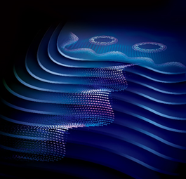 由于磁场作用,体内电子在面内的运动形成朗道能级,如上方圆圈所示。在仅有一个朗道能级被占据的量子极限下,电子间的关联效应导致电荷密度波的形成,并进而使得体系转化为三维量子霍尔绝缘体。