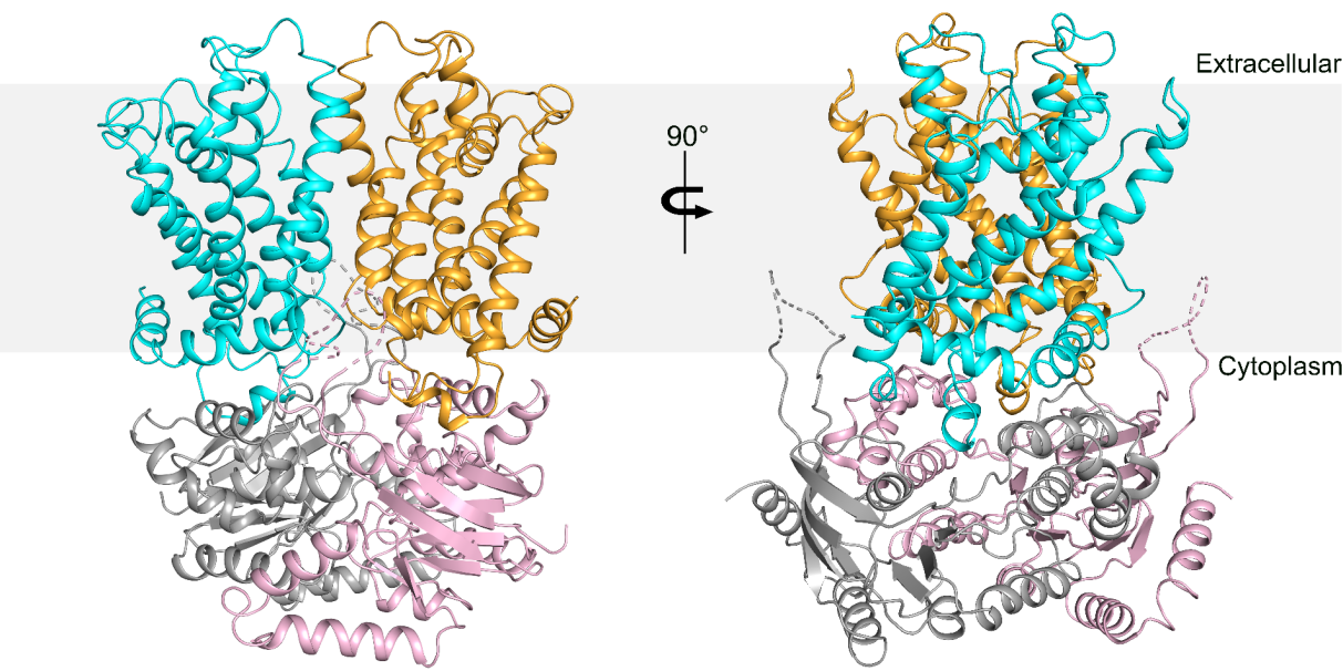 耐甲氧西林金黄色葡萄球菌(MRSA)是主要的临床致病菌之一,其引发的感染难以治愈甚至可能致死。由于近年来抗生素滥用,出现了对所有的β-内酰胺类药物都具有抗性的MRSA菌株。研究表明S. aureus细胞壁主要成分WTA是引起耐药性的关键因素之一。在革兰氏阳性菌中,WTA是一类共价连接在肽聚糖上的阴离子多聚物。WTA在细菌分裂、生物膜形成、宿主定殖以及细菌感染等过程中起着重要作用。因此,WTA合成路径中的关键酶是新型抗菌药物的重要靶点。在S. aureus中,WTA合成前体是N-乙酰葡糖胺修饰的多聚核糖醇长链,其通过共价键连接在锚定在细胞膜上的脂质载体Und-PP上。该Und-PP连接的多聚核糖醇长链前体先在细胞内完成合成,最后通过ABC转运蛋白TarGH翻转出细胞膜。作为最具潜力的抗生素靶标之一,TarGH及其抑制剂得到广泛研究。先导化合物小分子Targocil是近期被鉴定出来特异性抑制TarGH效率较高的抑制剂,但是其抑制的分子机制并不清楚。