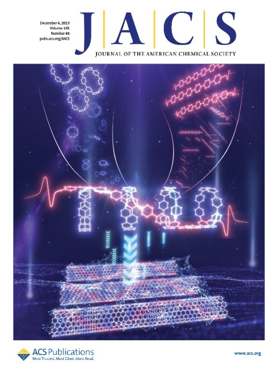 碳纳米管可被认为是仅包含sp2键合原子的全碳基管状共轭聚合物,然而迄今为止,直径特定的碳纳米管片段长共轭聚合物尚无研究报道。近日, 中国科学技术大学杜平武教授课题组通过精确分子设计,在世界上合成出首例单一手性指数单壁碳纳米管的长共轭链段,并研究了其电子传输和空穴传输性质。该工作以“A Long π-Conjugated Poly(para-Phenylene)-Based Polymeric Segment of Single-Walled Carbon Nanotubes”为题,以封面文章的形式发表于《美国化学会志》杂志上(J. Am. Chem. Soc. 2019, 141, 48, 18938-18943)。