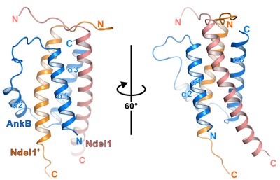 2019年12月30日,中国科学技术大学无膜细胞器与细胞动力学教育部重点实验室、微尺度物质科学国家研究中心、生命科学学院王朝教授课题组通过综合性运用生物化学、结构生物学、化学生物学及分子神经细胞生物学等研究手段,揭示了Ndel1/Ankyrin-G复合物在神经轴突起始段调控物质选择性进入轴突,从而维持神经细胞极性的分子机制,在美国科学院院报《PNAS》在线发表题为“Mechanistic insights into the interactions of dynein regulator Ndel1 with neuronal ankyrins and implications in polarity maintenance”的研究论文,这是张明杰、王朝团队2018年在《Nat Chem Biol》杂志发表Ankyrin家族蛋白中鉴定调控细胞自噬短肽工作之后,围绕Ankyrin家族蛋白的又一系列研究成果。