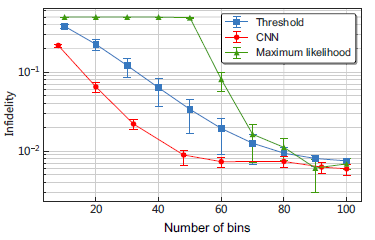 李传锋研究组提出了利用机器学习算法分析光子到达探测器时间序列的方法来甄别离子态。相比阈值甄别,可以在更短的时间内获得更高的保真度。为了实现对离子态的快速实时读取,研究组进一步在现场可编程门阵列(FPGA)硬件上编程,并运行机器学习算法,在总时间170微秒内对Yb171离子读取保真度大于99.5%,其中包含了荧光探测时间和硬件算法运行时间。