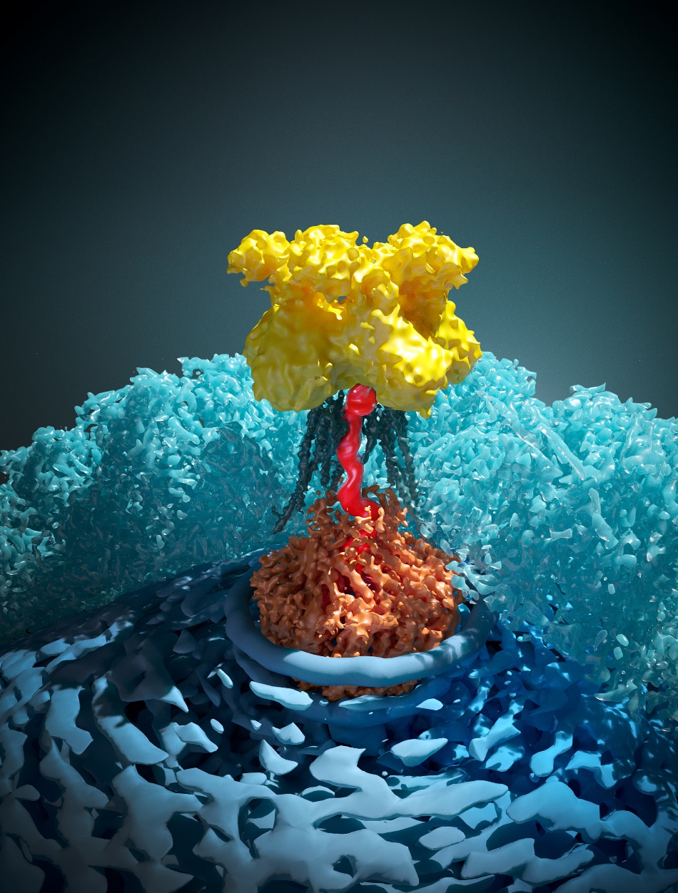 图1.人类I型单纯疱疹病毒(HSV-1)DNA通道蛋白的原子分辨率三维结构(作者:王国燕、马燕兵)