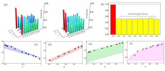 项国勇等人将复数作为一种量子资源,揭示了其在局部量子态区分中有着不可替代的作用,并且更进一步在量子资源理论的框架下,研究了该种资源的度量方式以及在各种量子操作下的转化问题。他们从理论上完全解决了复数大小的鲁棒性度量问题、单比特量子态在自由操作下的转化问题以及任意纯态的在自由操作下的相互转化概率问题。项国勇等人利用参量下转换制备的双光子纠缠态,进一步测定并比较了当仅用实数测量基和可使用任意测量基情形下的局部量子态区分的成功概率,成功观察到了当使用复数测量基时其成功概率的增加,从而验证了复数在量子力学中具有重要的作用。