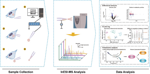 中国科学技术大学生命科学与医学部熊伟教授团队与仓春蕾教授团队通过建立单溶酶体代谢组质谱检测技术,首次实现基于单个溶酶体代谢组学信息的溶酶体分型,并深度探索了细胞衰老过程中溶酶体代谢组学的异质性改变。该研究成果以“Metabolomic Profiling of Single Enlarged Lysosomes”为题,于2021年6月14日在线发表在自然杂志子刊《Nature Methods》上。