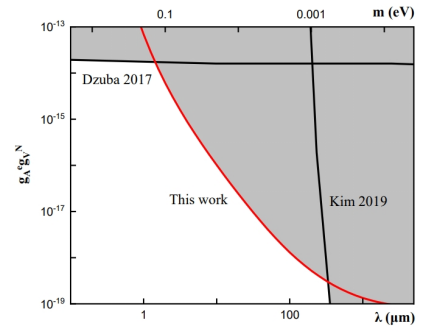 图:红线是此次实验对新奇自旋相互作用耦合常数gAegAe作出的实验限定。