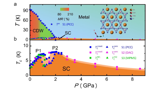 图示:CsV3Sb5超导体的压力-温度相图。