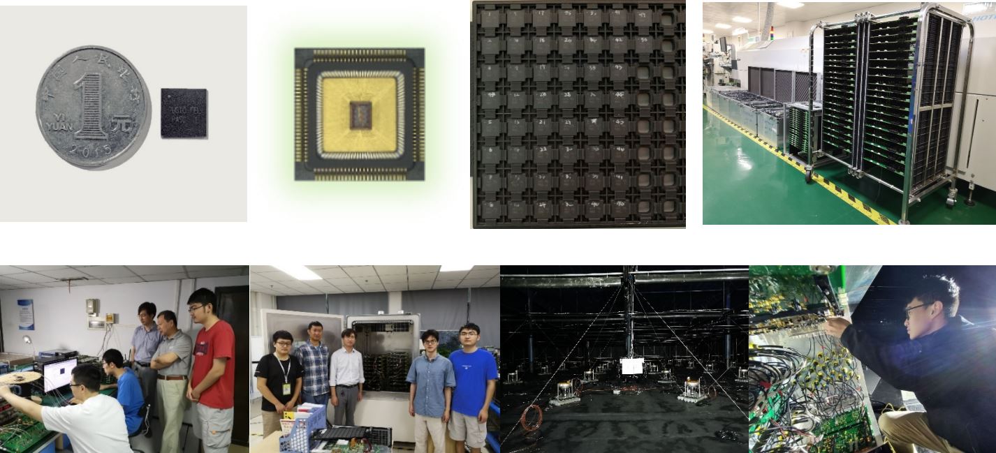 项目负责人安琪、总工程师赵雷和副总工程师曹喆带领的WCDA大尺寸光敏探头读出电子学研究团队成功完成该系统的整体研制和工程实施,并完成四项重大技术突破。研究团队针对WCDA采用国产新型20英寸MCP PMT的新方案成功完成前端读出ASIC(专用集成电路)--PASC芯片的研制和优化设计(此前世界上无一款成熟ASIC芯片可满足此实验需求),并正式用于拉索工程中,这也是我国在大型宇宙线物理实验中首批使用的自主研制ASIC芯片。