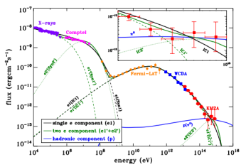 图1:蟹状星云辐射的伽马射线能谱,WCDA和KM2A均为LHAASO的核心探测器。