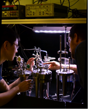 图、Florian Ritterbusch博士与研究生王杰调试高亮度共振真空紫外灯。