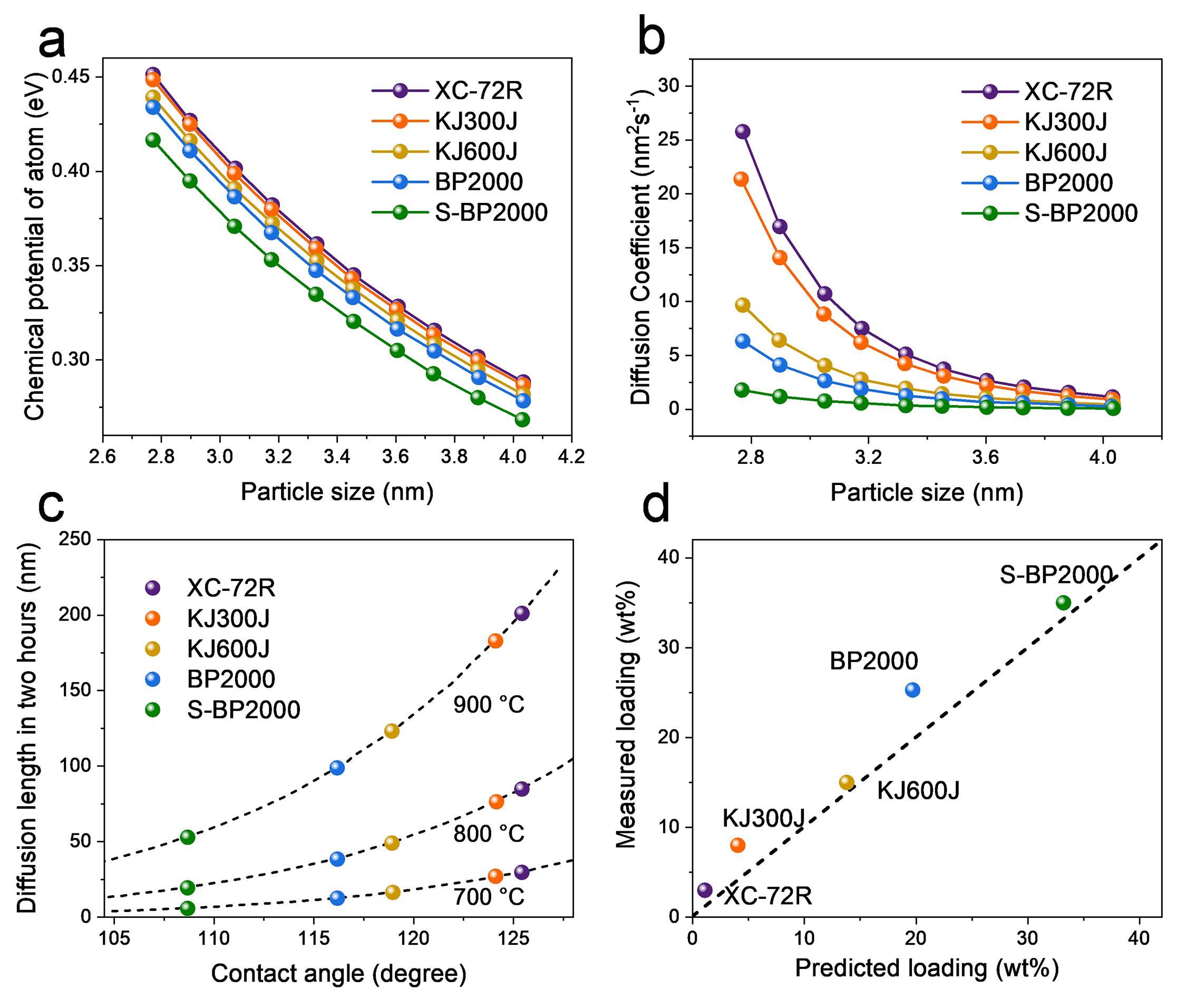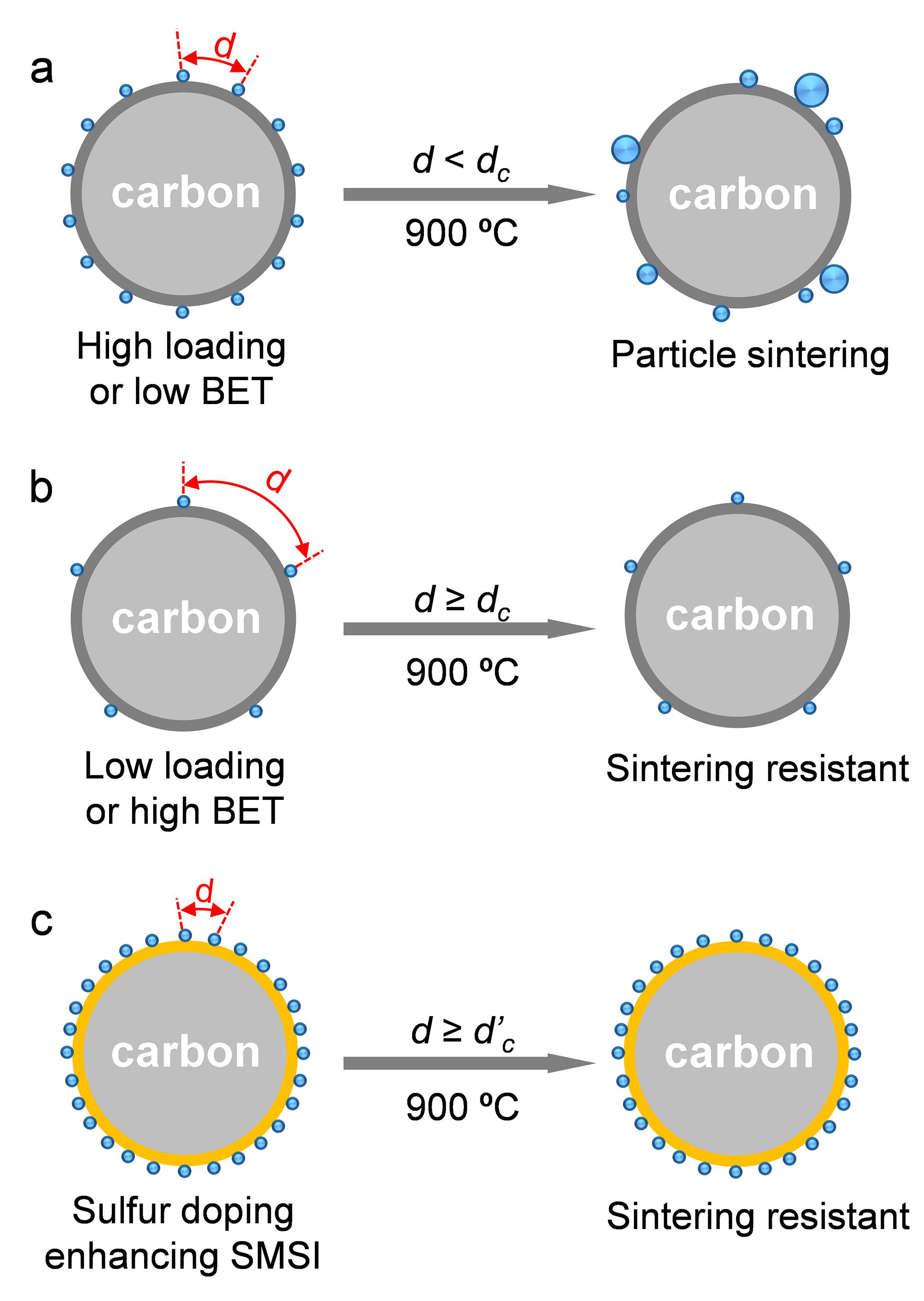 该项工作提供了一种对于给定催化剂载体预测最高担载量的方法,并提供了一种通过调节金属和载体相互作用以及载体比表面积来系统地提高抗烧结催化剂最大担载量的有效策略。