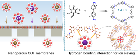图1亚2-nm COFs膜利用氢键作用实现高效离子筛分