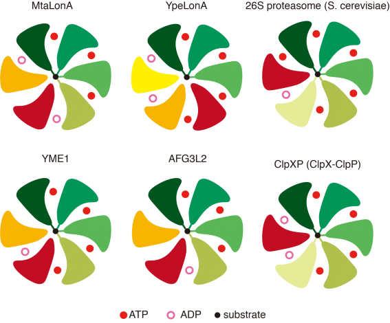 AAA+蛋白酶与底物结合的核苷酸结合状态比较
