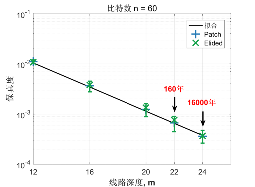 图二:量子随机线路取样保真度随线路深度的变化及目前最快的超级计算机“富岳”完成相同任务需要的时间。