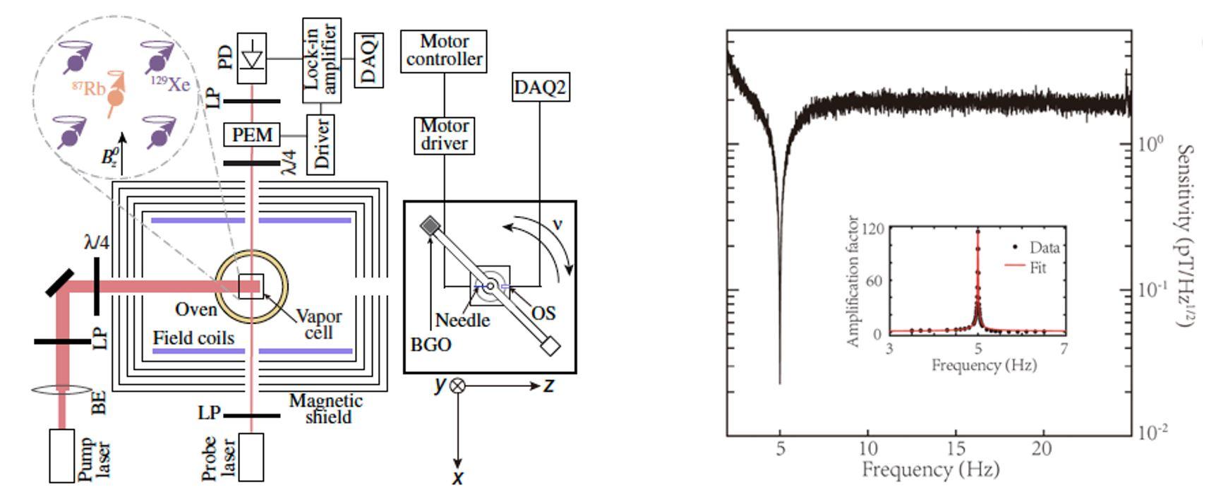 图1 检验新相互作用的实验装置和相应的磁探测灵敏度。