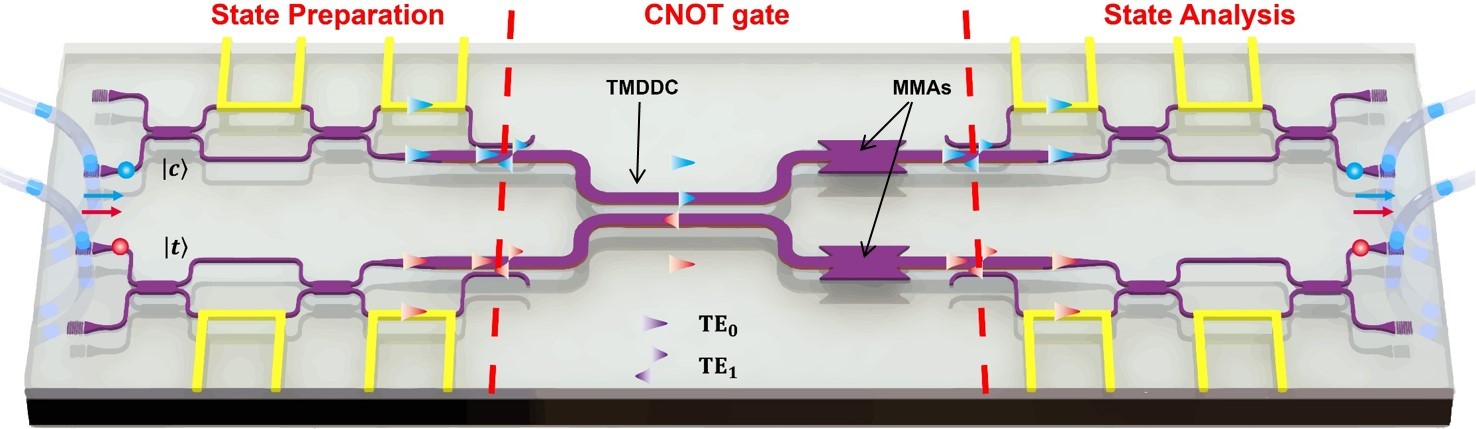 图1. 光子波导模式编码量子控制非门芯片示意图