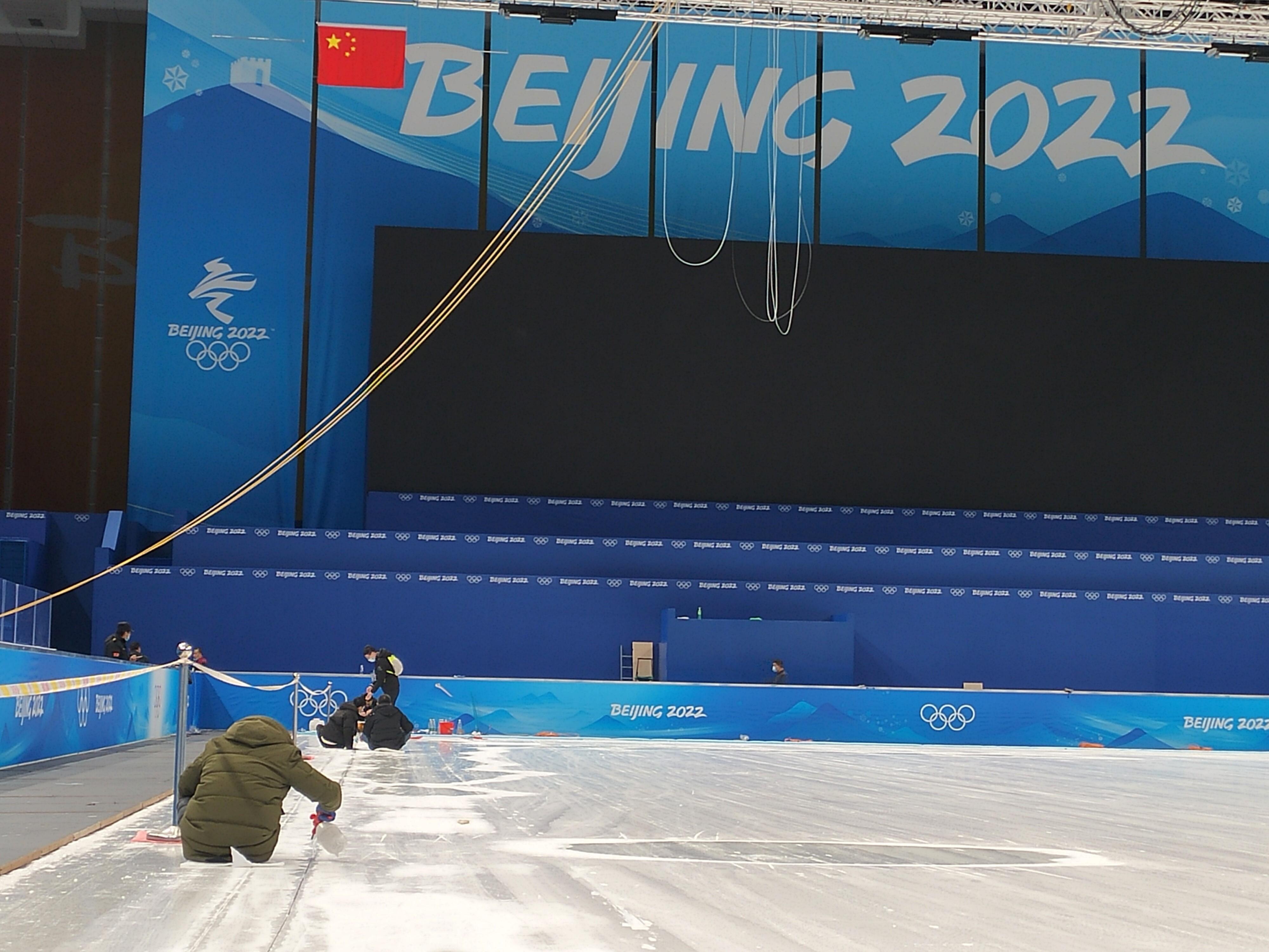 在“冰立方”冰壶赛场铺设用于冰体温度监测的通讯光纤