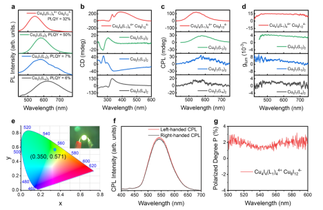 中国科大在构筑手性多级结构铜碘团簇基圆偏振发光材料方面取得进展