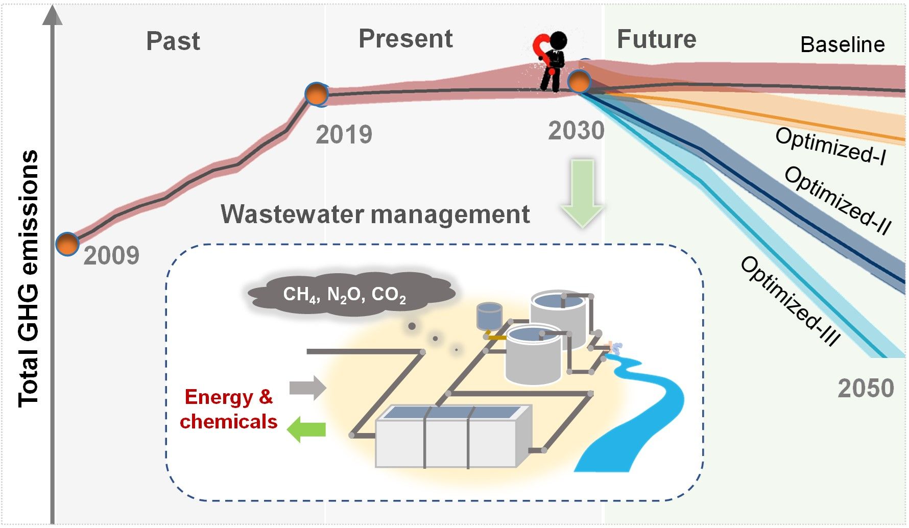 污水处理厂不仅是电能和化学品消耗的大户,而在污染物降解转化过程中还大量产生和直接排放CH4、N2O等温室气体,因此是不可忽视的碳排放源。在当前的“双碳”目标时代背景下,污水处理行业如何实现碳中和已成为了全社会关注的焦点。然而,目前仍缺乏国家尺度的、详细的污水处理碳排放基础数据,严重制约了各国碳减排策略的制定和实施。中国当前的总碳排放量和污水处理行业规模均为全球第一,因此全面评估中国污水行业的碳排放现状及未来发展趋势将不仅能为污水行业的发展规划提供有益参考,对碳评估和碳减排也将具有重要意义。