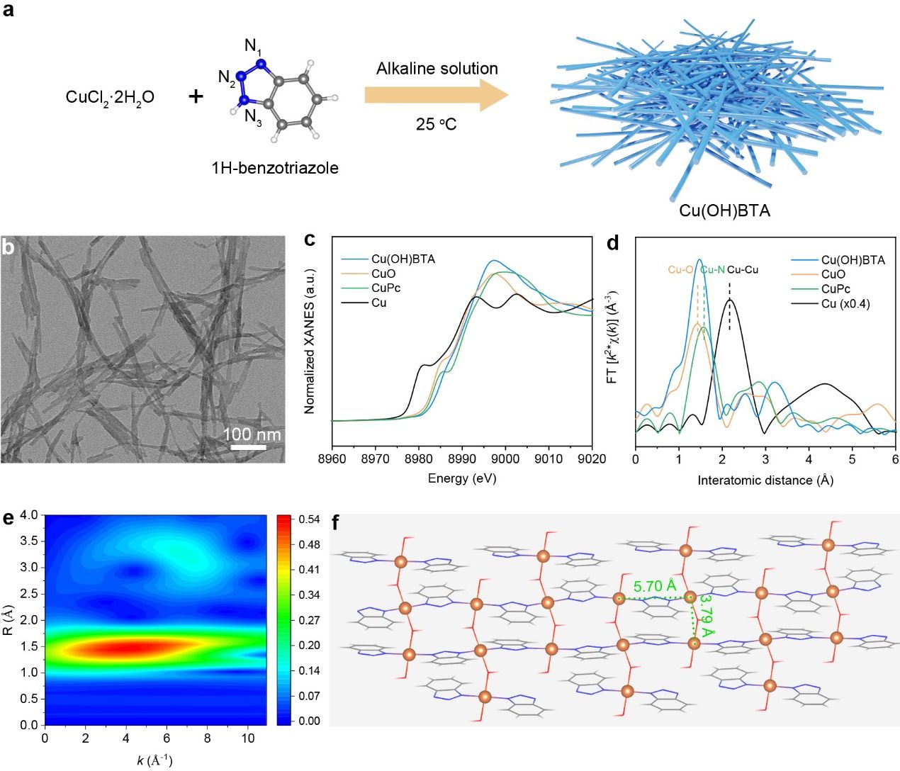 图1. 苯并三氮唑铜的合成过程与结构表征