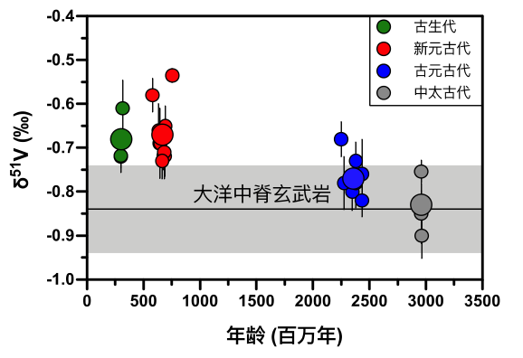 自从45.6亿年前地球形成以来,地球经历了漫长的演化和分异。现今的地球是太阳系中唯一一个拥有长英质大陆地壳的类地行星。大陆地壳最初的成分是来自地幔的镁铁质岩浆,而板块运动使得大陆地壳进一步演化,并形成大面积的长英质陆壳。大陆地壳的化学成分变化与地球演化、板块运动和行星宜居性有着重要的意义。几十年来,研究者们根据不同的方法得出两种相反的认识。其一是太古宙早期以来大陆地壳就已经是长英质成分主导,另一种认识是太古宙中晚期之前大陆地壳成分仍然是镁铁质成分主导,从镁铁质向长英质成分的转变发生在太古宙中晚期-元古宙早期。产生争议的主要原因在于采用的地球化学指标具有多解性,V同位素则提供了一个可靠的方法。
