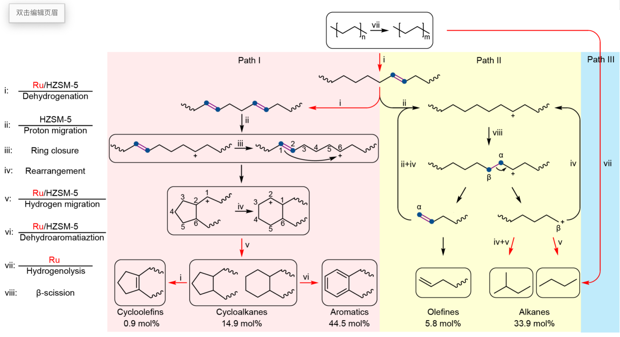 在这两个过程的启发下,研究人员设计出了一种“氢呼吸”策略用以降解高密度聚乙烯塑料。他们开发的分子筛负载金属钌催化剂(Ru/HZSM-5),可以一边让塑料成环脱氢变成环状烃,“呼”出氢气,一边又让塑料 “吸”入其自身释放的氢气,并裂解变成短链烃。