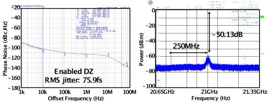 图2.CSS-ADPLL相位噪声与参考杂散测试结果