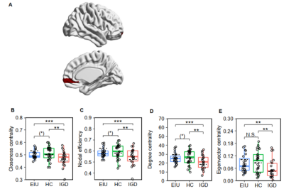 网络游戏障碍是一种对游戏失去控制,并且将游戏优先级提高于其他活动,无视出现负面后果仍继续或加剧游戏的行为模式。研究网络游戏障碍的生物标记物有助于理解其病理过程,帮助早期检测、诊断和治疗。作为一个复杂系统,大脑功能是由其构成元素之间的相互作用所塑造的。因此,大脑连接网络的特征可以作为网络游戏障碍的生物标志物。借助功能磁共振成像(fMRI)等脑成像技术,我们可以在毫米级分辨率构建整个大脑的功能网络。然后,借助网络分析方法,我们可以可靠地量化大脑功能网络的连接模式。其中,中心性在量化节点在网络组织中的重要性和识别与大脑疾病有关的关键区域方面发挥着重要作用。