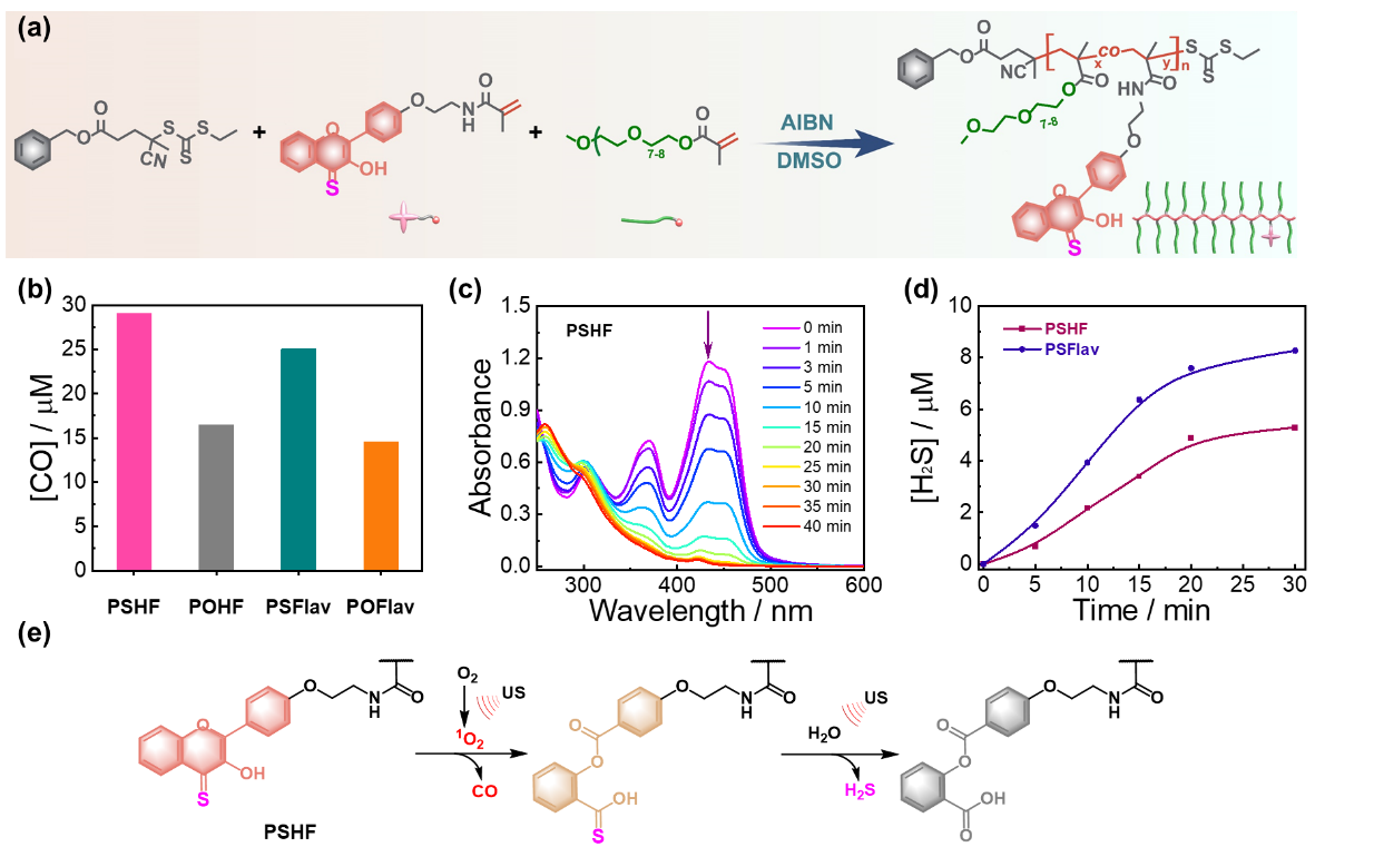 图3.一氧化碳和硫化氢共释放聚合物制备及其释放机制。