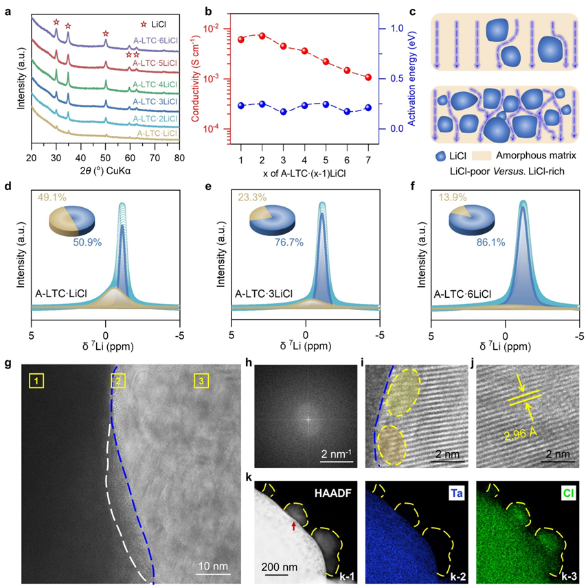 图2. 无定形氯化物复合固态电解质性能及结构表征