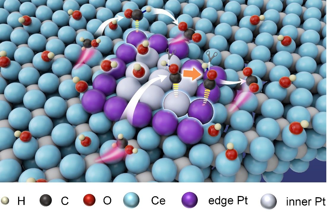 针对上述关键科学问题,中国科学技术大学国家同步辐射实验室、精准智能化学重点实验室在金属载体相互作用机制的原位同步辐射研究中取得新进展,研究团队利用金属与载体电子相互作用实现甲醇氧化反应中非CO路径的精准调变,并通过高精度、多维度同步辐射原位谱学技术精确解析了上述不同反应路径选择性调控的内在关联机制,阐明了小分子氧化过程的反应机理,为精准高效调控化学反应路径和催化性能提供了理论基础。相关研究成果以“Edge-Rich Pt-O-Ce Sites in CeO2Supported Patchy Atomic-Layer Pt Enable a Non-CO Pathway for Efficient Methanol Oxidation”为题,发表在国际学术期刊《德国应用化学》(Angew. Chem. Int. Ed. Doi: 10.1002/ange.202410545)。