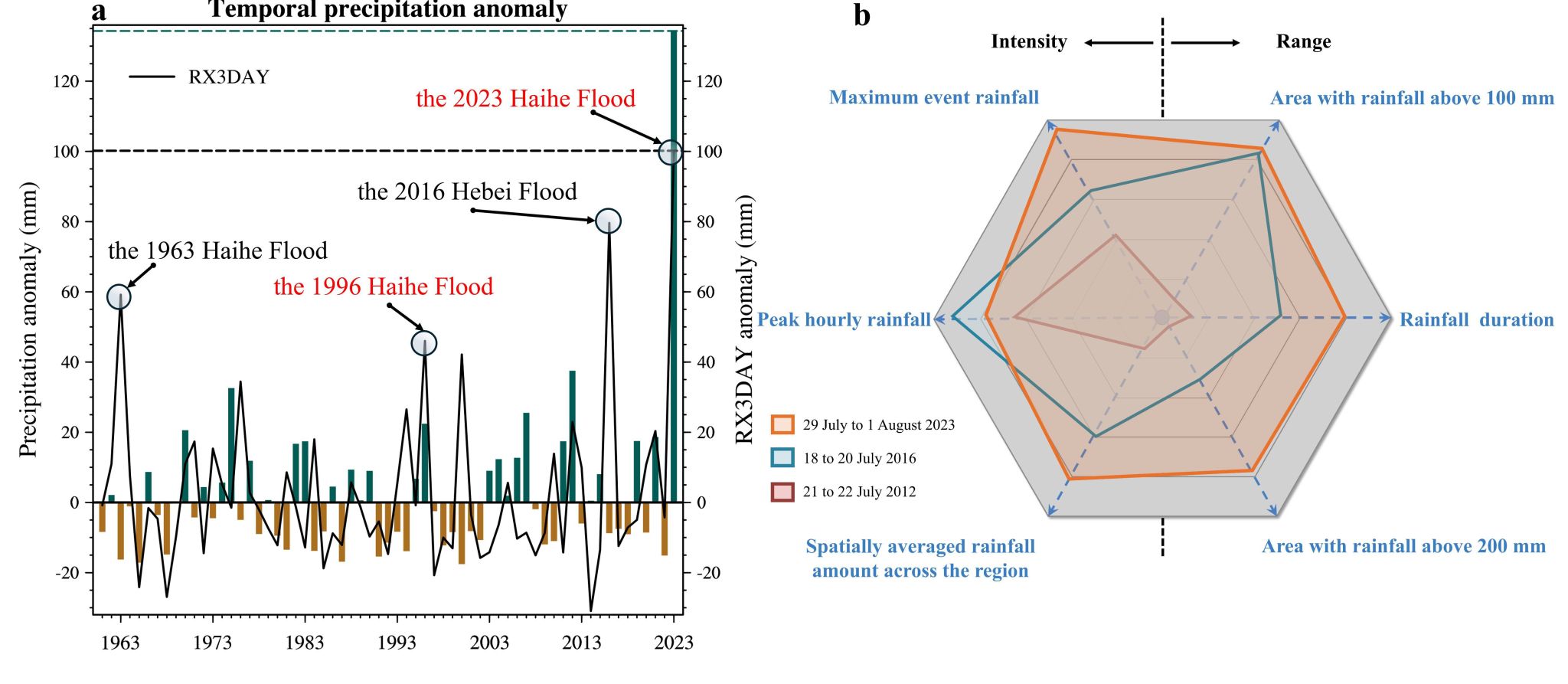 图2.2023年华北“23.7”事件极端降雨的极端性