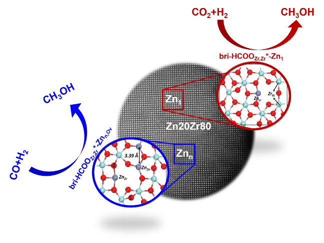 中国科大发展工作催化剂表面基元反应动力学策略揭示了ZnO-ZrO2催化剂在催化CO2和CO加氢制甲醇反应中截然不同的催化活性位