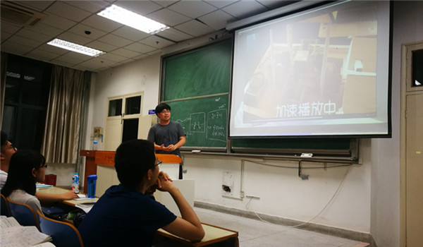 接下来,计算机图形学方向的陈臻学长用幽默生动的语言为大家介绍了几门课程和相关领域的老师,并且用精彩的视频呈现了自己的研究成果。之后概率论助教、科学计算方向的王嘉铭学长播放了一部英文视频,简要介绍了整个线代数学体系。两位基础数学方向的学长毛天乐和罗宇杰,认真地将数学之美呈现在大家面前。
