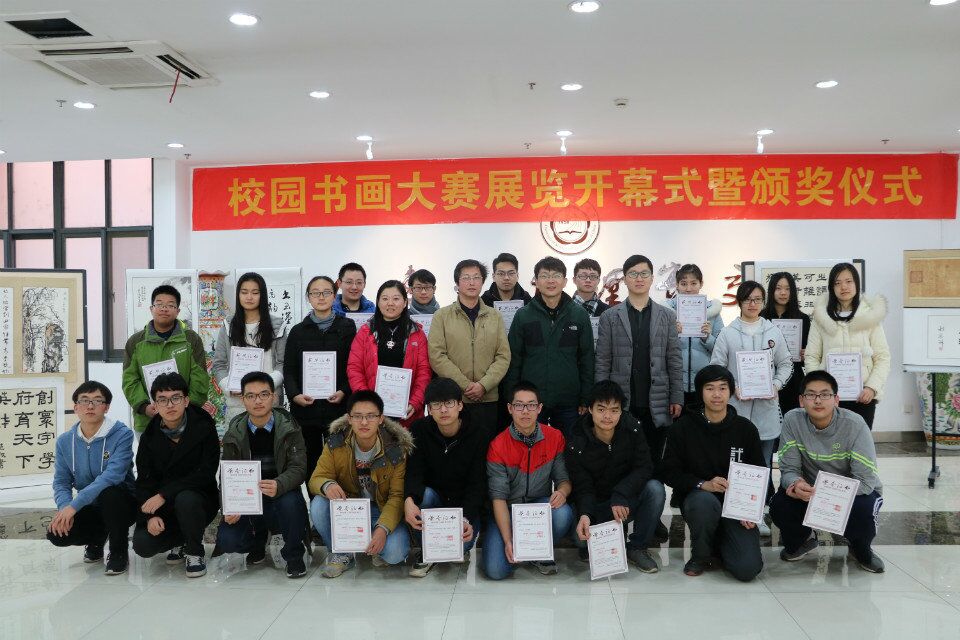仪式由双馨书画协会会长侯虎旺主持,获奖选手和校学生双馨书画协会和图书馆志愿服务分队的工作人员悉数到场。图书馆副馆长宁劲老师、馆长助理郭磊老师、学生主管丁菁梅老师、网络档案联合团总支书记戴玮老师、管指委文化研究类分管委员助理朱玮奇同学参加了活动。