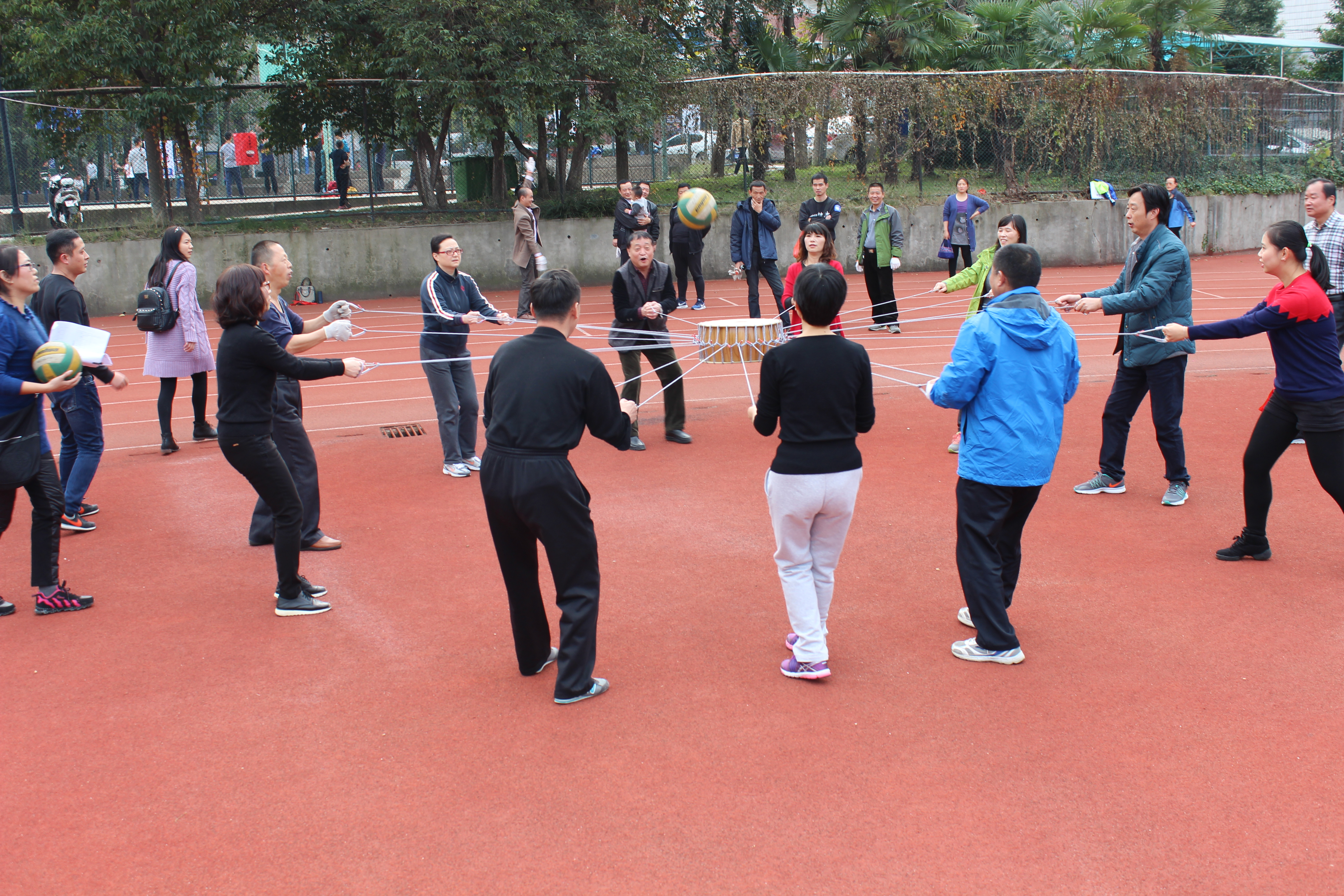 本着“友谊第一,比赛第二”的宗旨,各参赛队伍在欢乐的气氛中开始了各个比赛项目。两人三足比赛中,一对对参赛队员手挽手、脚并脚、心连心,一步一个脚印奔向终点,现场的拉拉队不时为选手默契的配合欢呼鼓掌。击鼓颠球比赛中,各支队伍参赛人员手拉绳子,绷直鼓面,跟着口号,富有节奏地颠起排球,一声声落下的鼓点让大家紧张而又激动。拔河比赛中,每个队伍的十二名参赛队员依次排列开来,伴随着拉拉队的呐喊助威声拼尽全力。