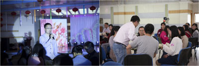 下午三点,联谊活动正式开始。活动以圆桌交流为主,座位轮换,辅以互动和游戏,通过自我介绍、破冰游戏、真情告白、八分钟交友等互动环节,为单身男女青年制造相互认识、加深了解的机会,也让每一位单身青年都有机会面对面交流并展示自己,全场气氛温馨而活跃。