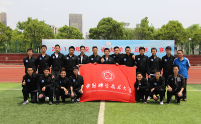 安徽省大学生足球联赛暨全国大学生足球联赛安徽赛区选拔赛于5月10日-17日在蚌埠举行,来自全省各地的20多所高校35支男女足代表队参加本次赛事。中国科大男子足球队20名队员在体育教学部老师的带领下,团结一致,敢打敢拼,一路过关斩将,以六战全胜、未失一球的骄人战绩夺得了阔别十年的全省冠军,并取得了代表安徽省参加全国大学生运动会和大学生足球联赛的资格。