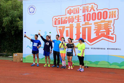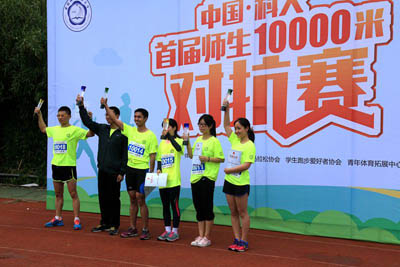 本场对抗赛分师生竞赛组和畅跑组,集竞技性和趣味性于一体。竞赛组由裁判统一计时,畅跑组则需要运动员使用GPS软件自行记录,只计里程不计时间。赛前的开幕式上,在教工马拉松协会会长丁泽军老师和学生跑步爱好者协会会长何权同学的介绍下,竞赛组的10名老师、10名学生依次亮相,引起现场阵阵掌声。