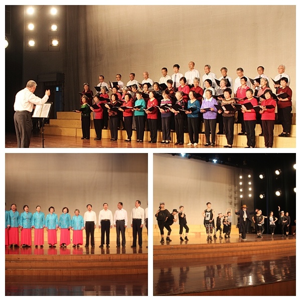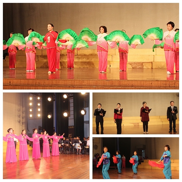 9日下午2点30分,金秋艺术团在东区大礼堂举行庆重阳文艺演出。此次演出共十五个节目,涵盖民乐、合唱、舞蹈、时装表演等艺术形式。联欢会在我校金秋艺术团民乐队演奏的《乱云飞》中拉开帷幕,民乐合奏气势恢宏,振奋人心。我校老年体协腰鼓队、老年体协太极队、金秋艺术团舞蹈队、金秋艺术团合唱队、金秋艺术团时装表演队以及老年大学时装表演班,为观众带来了威风腰鼓表演、舞蹈表演、合唱、诗朗诵以及时装表演,给大家带来了一场精彩纷呈的演出,充分展现了我校老同志多姿多彩的生活。