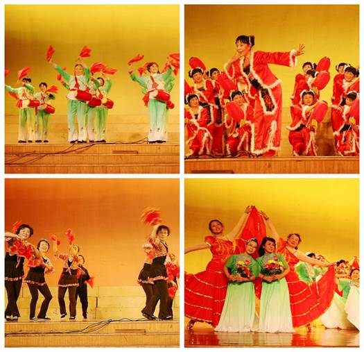 轻盈的脚步,艳丽的红绸,激昂的鼓点……联欢会在腰鼓表演《欢天喜地过新年》中拉开帷幕。我校老年体协腰鼓队队员们热情表演了锣鼓声里的新年氛围。广场舞《又见山里红》,整齐从容的舞步,乐观豁达的心境,表现了离退休的姐妹们和谐又温馨。艺术团民族舞一队带来了精彩的舞蹈《红灯笼》,艺术团民族舞表演二队带来《祖国颂》。艺术团合唱队的大合唱《坐上高铁去北京》、《美丽中国进行曲》,仿佛把大家带到那复兴路上,畅想美丽中国;混声合唱《蒙古人》、《闪亮的日子》等一串串经久不衰的歌曲演绎了经典,唤起了回忆;民歌《最美的歌儿献给妈妈》,表达了老同志对党和国家的深厚感情。