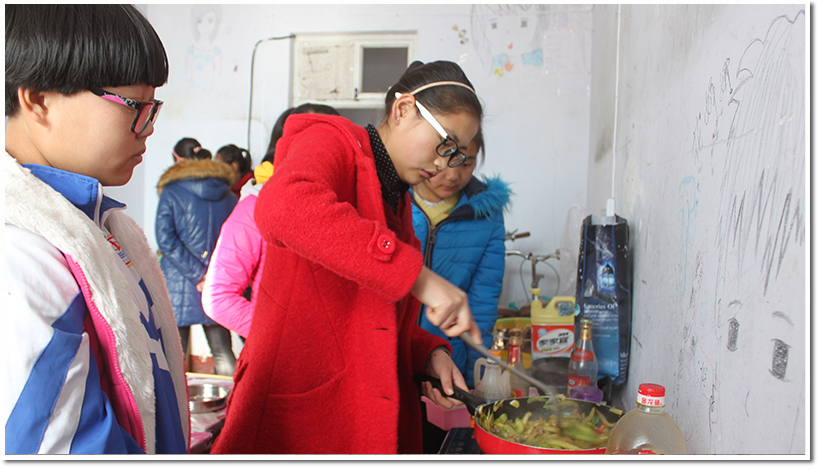 12月28日中午,在宁夏海原支教的第十六届支教队部分队员和海原三中周末留校的部分留守儿童一起成功举办了“留香厨房”活动。