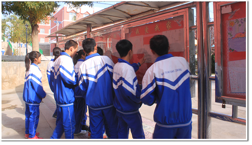 为了鼓励学生积极参加社会活动,提高环保理念,进一步扩大活动的影响,支教队员将优秀获奖作品面向全校师生进行了展示,引得不少师生驻足围观。