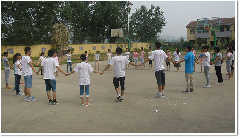 接着是“心手千千结”。经过前面的两个活动,学生们也渐渐放开了。本对于活动不怎么积极的男生们在看到女生们玩得不亦乐乎时也忍不住加入到了活动中来,将本次活动推向了一个小高潮。
