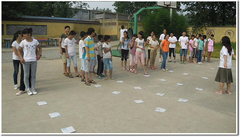 首先进行的游戏是“进化论”。开始时将学生分为两组,男女平均分配,在实际活动开始后发现,学生们都比较拘谨、害羞,特别是在男女学生之间。活动开始后男女生渐渐各自分为一组。发现这一问题后,在接下来的游戏中赶紧调整了组织方式,先将男女生分开,待学生们慢慢玩开后再合在一起。