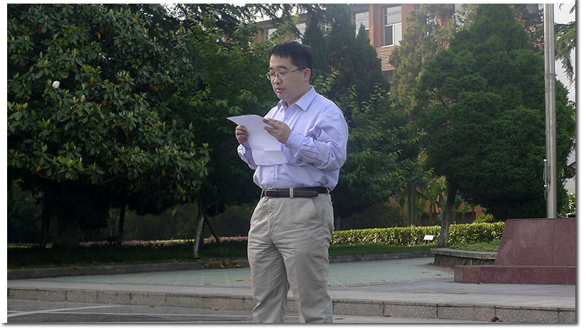 升完旗后,创新一班班主任代镭做了国旗下讲话,号召大家以民族复兴为己任,为国家的现代化事业而奋斗。