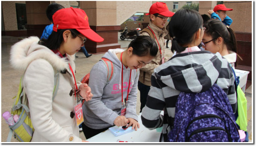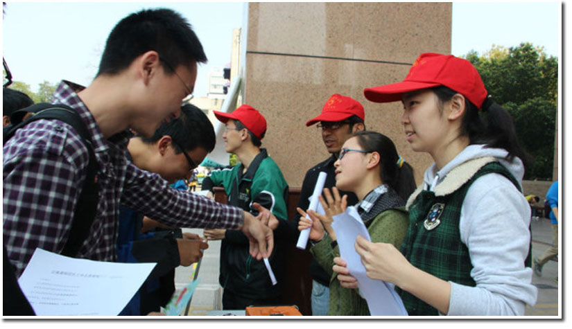 活动中,特教部组织了现场手语教学,以唤起同学们对聋哑儿童的关爱;图书银行免费发放各种杂志,倡议同学们踊跃捐书;国际交流志愿服务队用英语和来往的同学们进行沟通......各式各样的活动吸引了不少来往的同学。