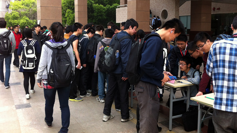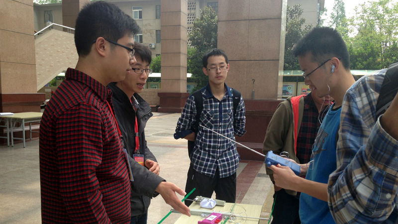 信息科学与技术学院提供了“单片机编程”和“无线电测向”两个实验。“单片机编程”实验考虑到编程的专业性,工作人员便提前为大家准备好了程序的注释,并为现场参与的同学耐心的讲解,让每一个同学都能体会到单片机的神奇与魅力!“无线电测向”实验中,现场的同学拿着工作人员给的信号接收器,四处搜寻信号源,格外专注!