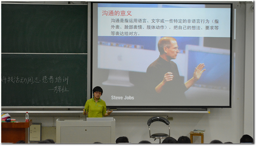 4月25日晚,在科技活动周的志愿者招募告一段落后,芳草社邀请了人文学院的宋怡老师为新招募的志愿者们进行了一次关于沟通与情绪方面的培训讲座。